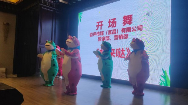 盛宴启幕,共襄团圆。团年宴在热烈喜庆的氛围中拉开帷幕。集团旗下咨声传媒(宜昌)有限公司管家部、营销部带来的活力开场舞《蛙来哒》,瞬间点燃了全场热情,象征着盛世集团新一年蓬勃发展的红火气象。